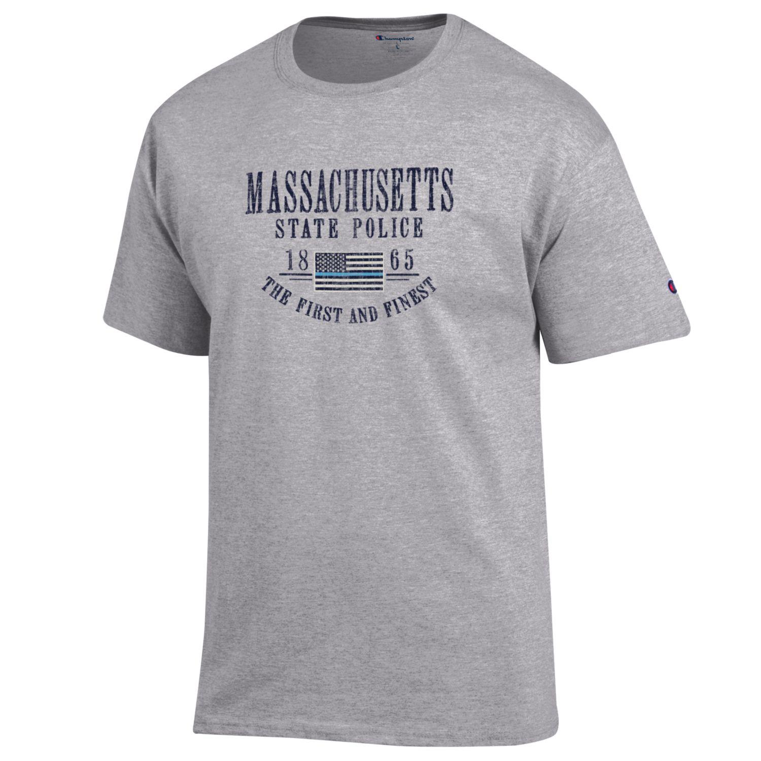 Champion Short Sleeve T-shirt, Lgo: MSP Thin Blue Line Flag Colors: Light Grey and Dark Grey