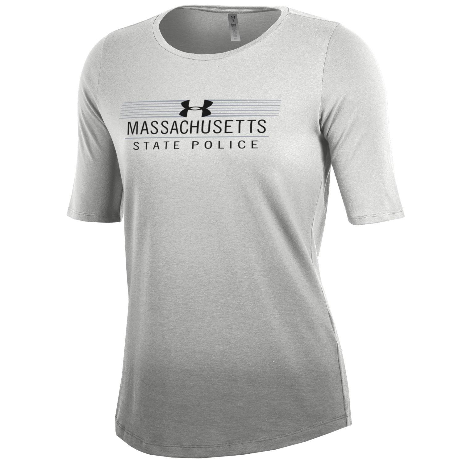 Woman's Under Armour Short Sleeve T-shirt Color: Omber Grey/White